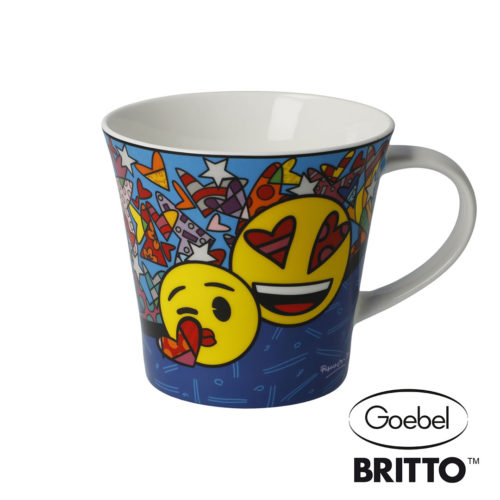 Romero Britto ist ein Künstler, der mit leuchtenden Farben und wunderschönen Mustern eine Botschaft des Optimismus, des Glücks und der Liebe in der Welt verbreitet. Die drei großen Marken Goebel Porzellan, Romero Britto und emoji® company – auch The Iconic Brand genannt – verbinden die Kunst von Romero Britto mit den Icons der Marke emoji® und schaffen zusammen Artikel voller Freude und Liebe. Im Goebel Onlineshop können Sie eine große Auswahl an Artikeln mit den liebenswerten Smileys von emoji® BY BRITTO® finden. Auf Bechern, Dosen und Accessoires sind sie ein echter Hingucker! Zeigen Sie Ihre Gefühle und schenken Sie Ihren Liebsten viel Freude mit den bezaubernden emoji® BY BRITTO®.