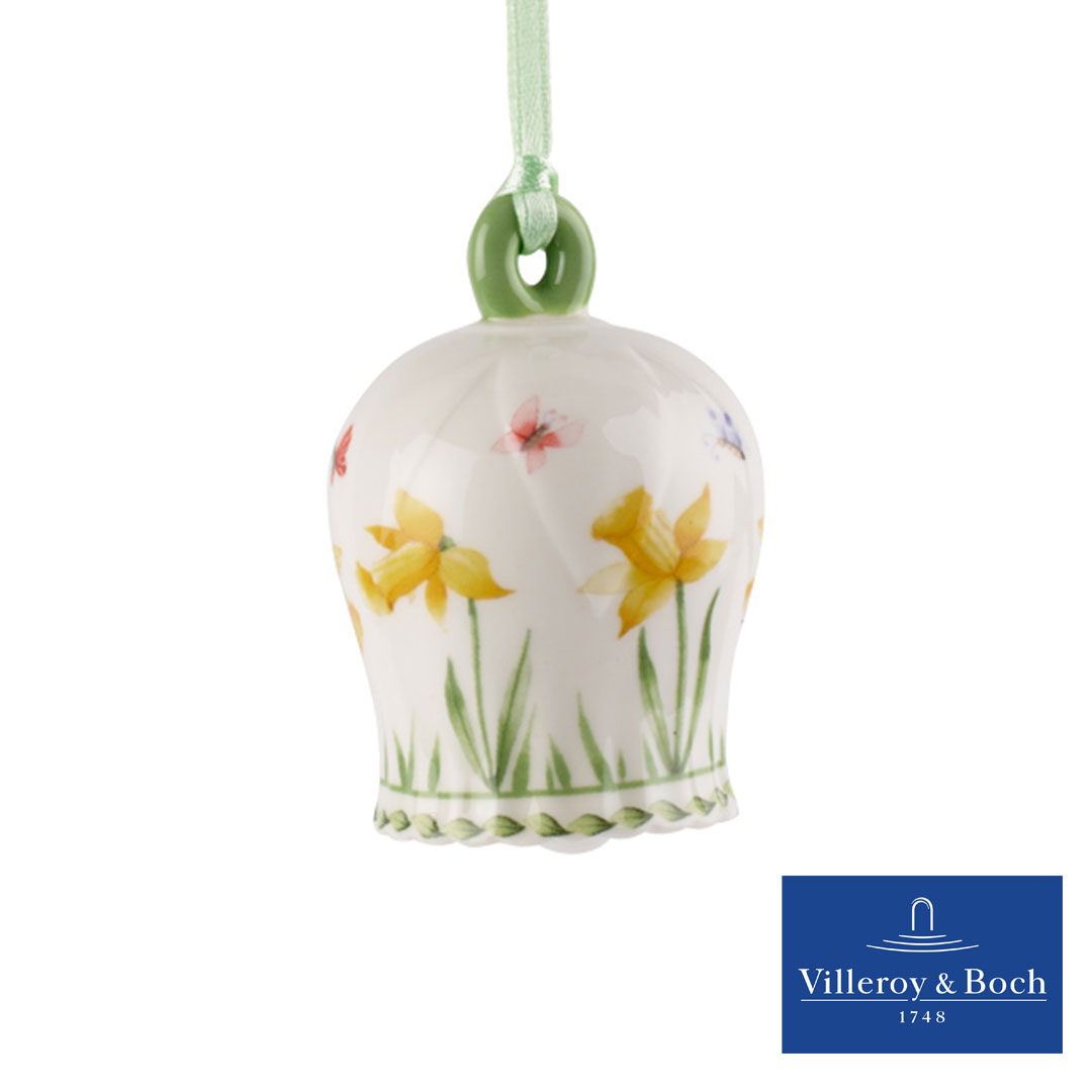 Schmücken Sie Ihren Osterstrauch mit den zarten Blüten der Kollektion New Flower Bells. Der Klöppel lässt die mit Blüten und Blättern verzierten Glöckchen festlich klingeln. Auch besonders schön zum Sammeln und Verschenken. Die hübsche Osterglocke aus Porzellan von New Flower Bells macht sich besonders hübsch als Schmuck am Osterstrauch oder am Fenster. Dekorieren Sie zu Ostern mit viel Liebe.